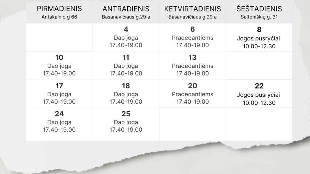 Gruodžio tvarkaraštis